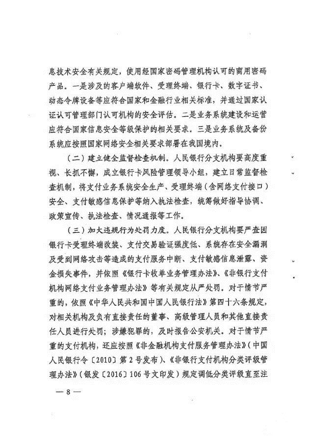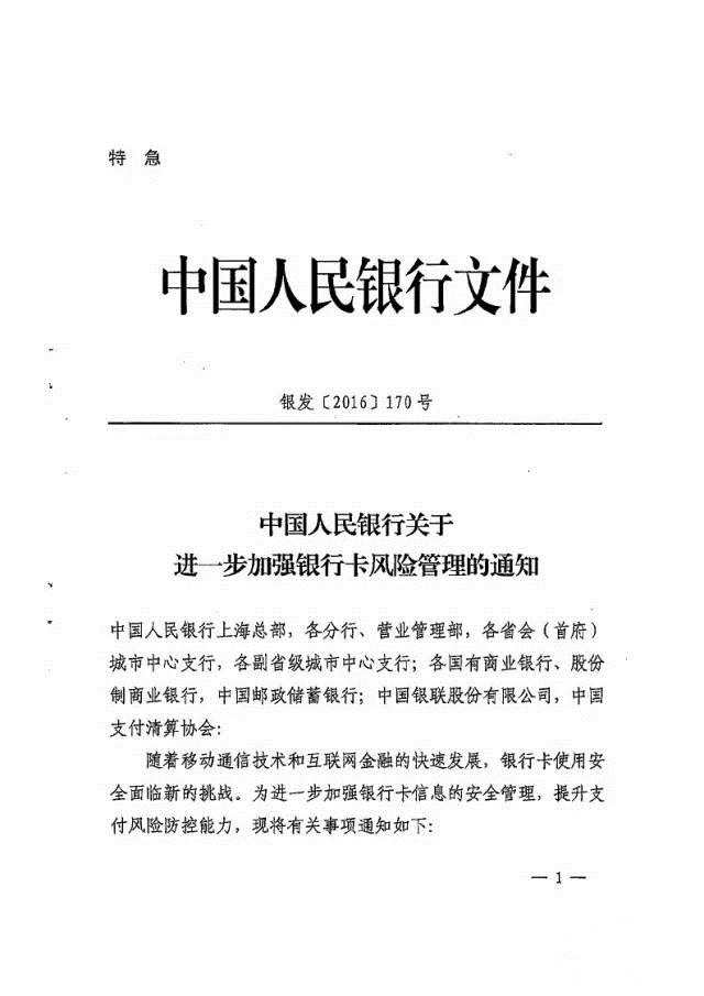 央行下发特急通知央行《中国人民银行关于进一步加强银行卡风险管理的通知》,,,给各机构,,,此次通知主要在面对移动通信技术和移动金融迅速发展的情况下,,,银行卡支付安全方面面临着新的挑战,,,央行此次文件覆盖的内容较全面的对参与银行卡支付产业各机构给出比较明确的管控指导方向!