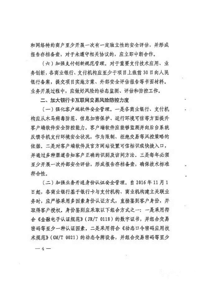 2016年11月1日起 各商业银行在基于银行卡与商业机构支付机构建立关联联系需要多重身份验证,,,并给出指导方式