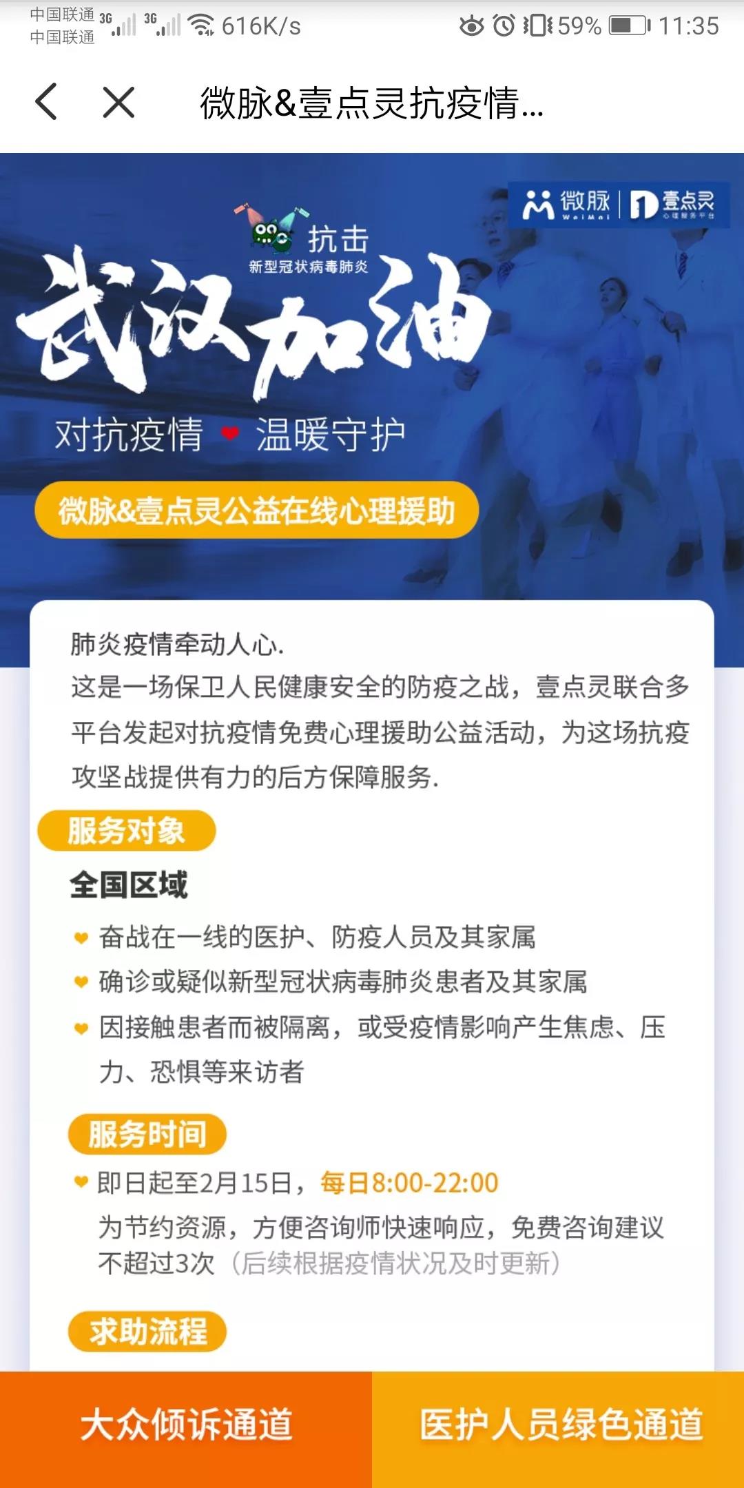 发起了对抗疫情免费心理援助